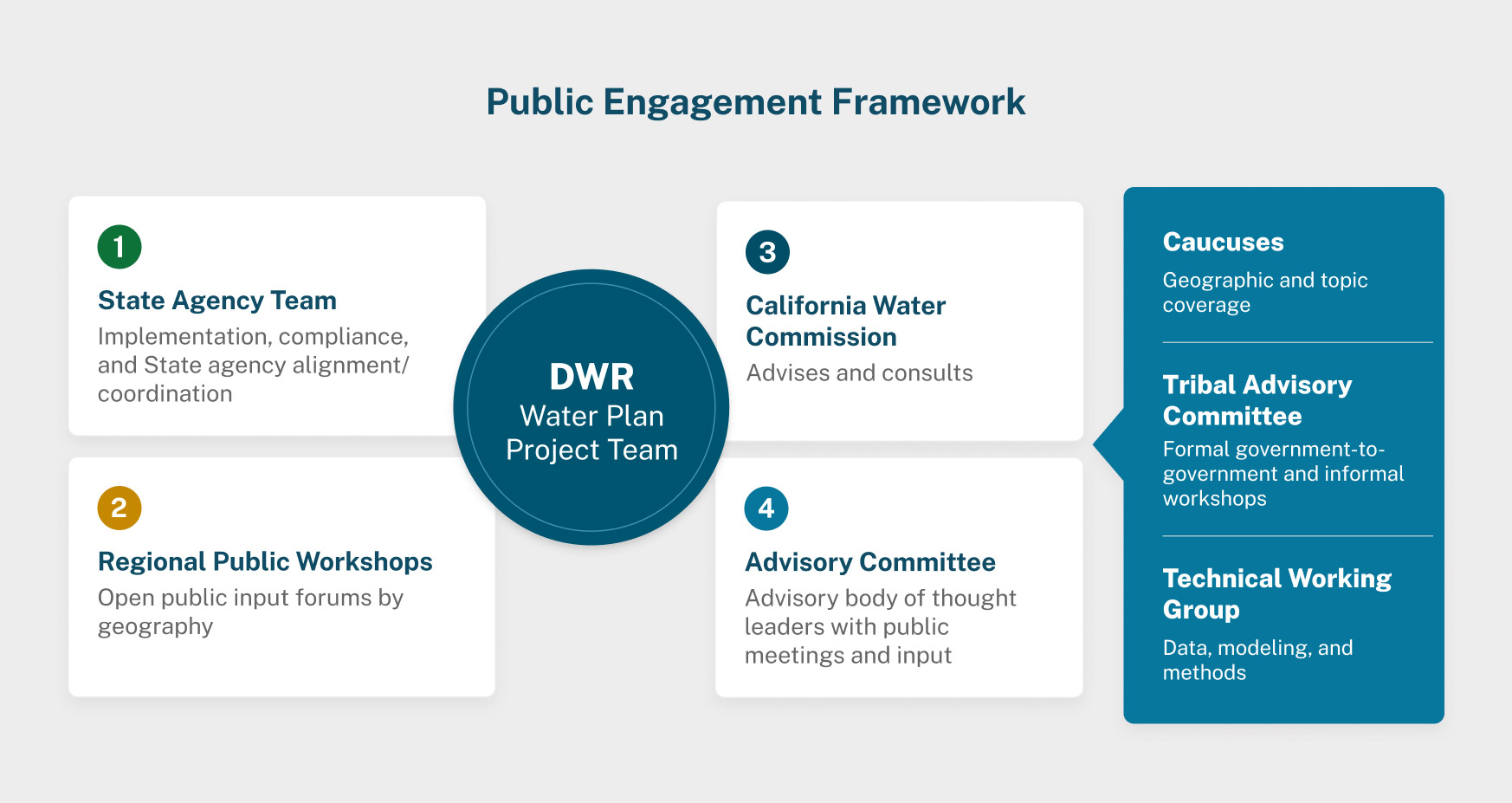 To ensure that California’s water planning process reflects the diverse needs of communities across the state, public participation is critical, and highly encouraged. Public input can directly shape priorities, strengthening the success of policy, to the benefit of all Californians.
